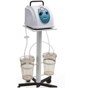Projetado para aspiração de líquidos e secreções, pode ser utilizado em pequenas e médias cirurgias, pois utiliza um motor elétrico de alto rendimento com 2 pistões e cabeçote duplo de potência nominal total de 79W ou aprox. 1/10 CV, vácuo de até 25 in Hg e fluxo de ar em torno de 24L/min, proporcionando uma aspiração contínua, suave e silenciosa.