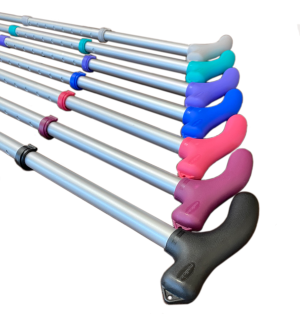 Cabo em alumínio com apoio para mão nas opções de cores: Preto, Cinza, Vinho, Azul, Lilás, Turquesa ou Rosa.