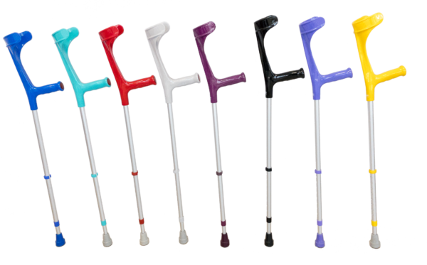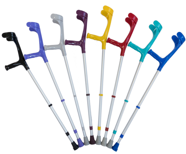 Muleta tipo Canadense com braço fixo em plástico polipropileno de alta resistência.