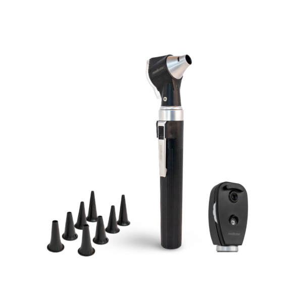 Otoscópio: Precisão com lente rotativa com aumento do campo de visão em 3 vezes.